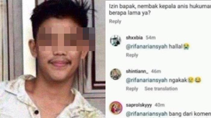 Komentar yang ditulis pemilik akun @Rifanariansyah itu bertuliskan "Izin bapak, nembak kepala anis hukumannya berapa lama ya?".