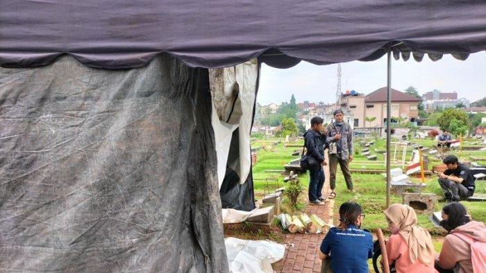 Kondisi proses pembongkaran makam Dante, anak Tamara Tyasmara & Angger Dimas di TPU Jeruk Purut, Pasar Minggu, Jakarta Selatan, tertutup dijaga polisi