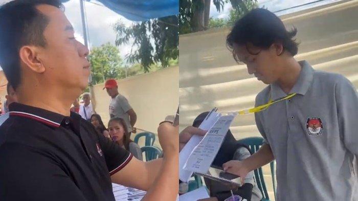 Dalam video berdurasi 21 detik itu terlihat seorang pria dewasa mengenakan kaus hitam memegang nametag seorang petugas KPPS berkaus abu-abu.