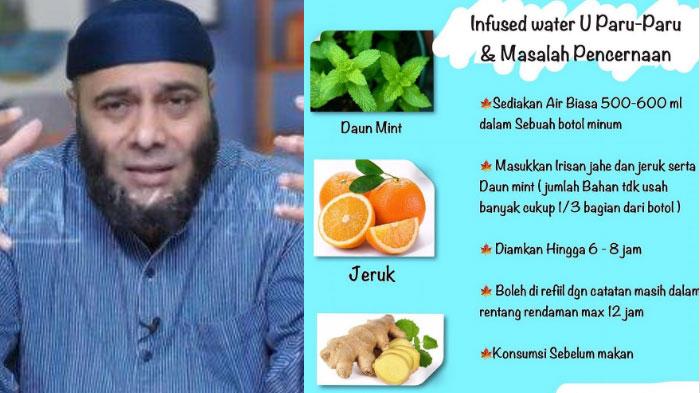 Inilah cara mengatasi masalah pencernaan dan paru paru oleh dr Zaidul Akbar, ahli kesehatan sekaligus pendakwah, Buat Infused Water Buah & Daun Mint..