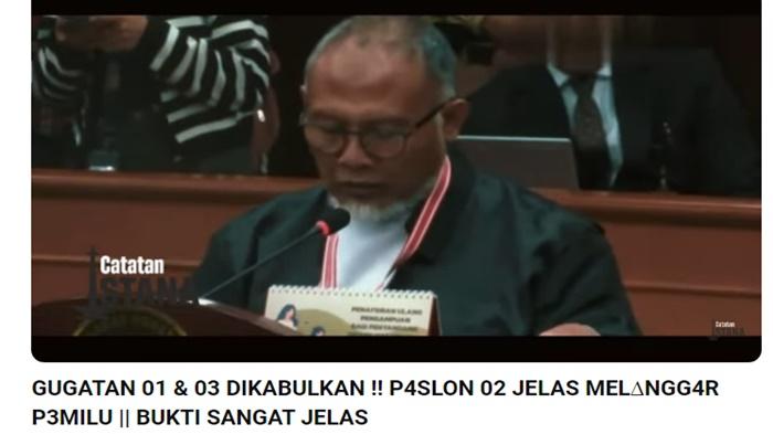 Adapun narasi yang beredar yang manyatakan MK telah mengabulkan gugatan pasangan Anies-Muhaimin dan Ganjar-Mahfud dibagaikan akun YouTube Ini.