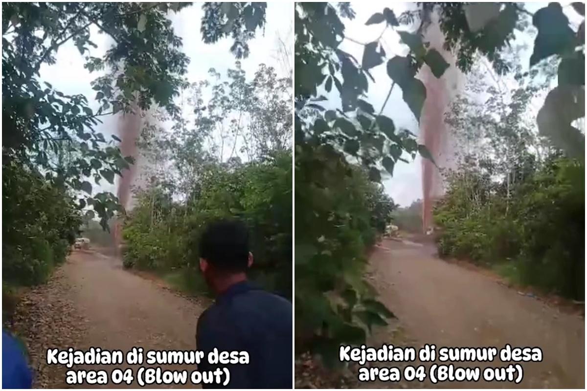 Dalam video tersebut tampak semburan gas bercampur lumpur bewarna kecoklatan tersebut membumbung tinggi ke udara dengan ketinggian sekitar 20 meter.