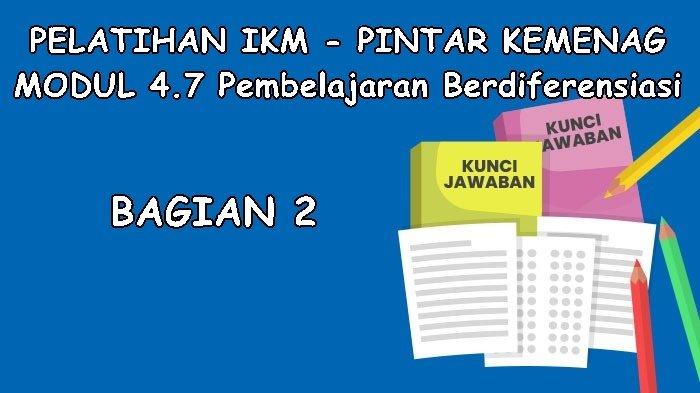 TRIBUNSUMSEL.COM - Berikut ini merupakan contoh soal Modul 4.7 Pembelajaran Berdiferensiasi (Pengelolaan Pembelajaran pada Kurikulum Merdeka) - Bagian 2 beserta kunci jawabannya dalam Pelatihan Implementasi Kurikulum Merdeka (IKM) Pintar Kemenag.