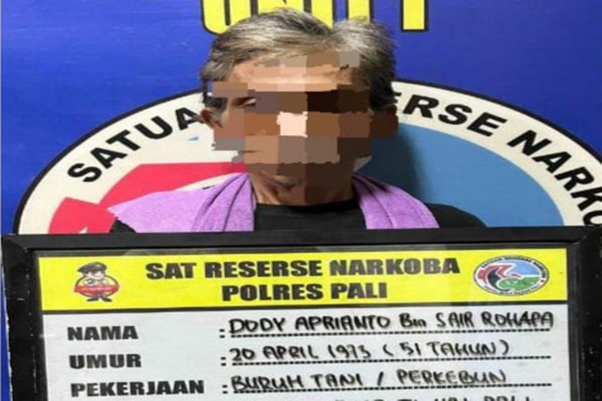 DA (51 tahun) warga di Kabupaten PALI, Sumsel ditangkap polisi saat berada di pinggir Jalan menunggu pembeli narkoba yang dijualnya.