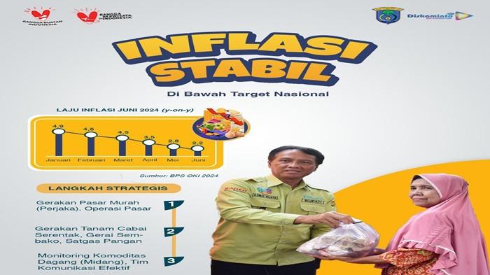 Berdasar Berita Resmi Statistik (BRS) di Kantor Bupati OKI pada Selasa, (2/7/2024) inflasi Kabupaten OKI diangka sasaran 2.27 persen secara tahun ke tahun (y-o-y) jauh di bawah nasional 2,51 persen dan Provinsi Sumsel 2,48 persen.