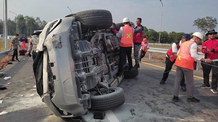 | Mobil Dinas OKU Kecelakaan dan Terbalik di Tol Indra-Prabu, 1 Pejabat Dibawa ke RS Hermina Palembang |