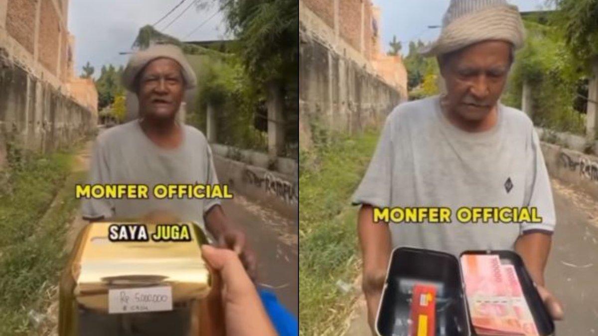 Sebelumnya, tampak konten kreator pemilik akun TikTok @monferofficial menghampiri seorang kakek.