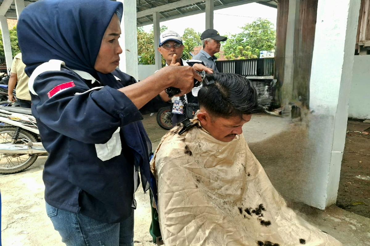 Ia menyampaikan, bahwa masyarakat yang mau potong rambut gratis.