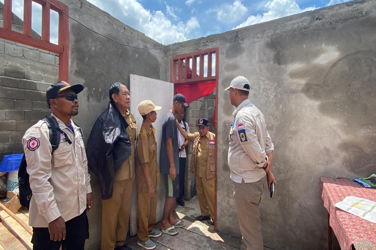 Wakil Bupati PALI, Drs H Soemarjono meninjau tiga rumah rusak akibat terjangan angin puting beliung, Senin (14/10/2024).