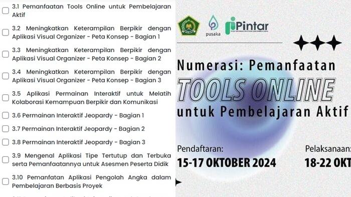 TRIBUNSUMSEL.COM - Pelatihan Numerasi: Pemanfaatan Tools Online untuk Pembelajaran Aktif akan dilaksanakan pada 18-22 Oktober 2024 di Platform Pintar Kemenag.