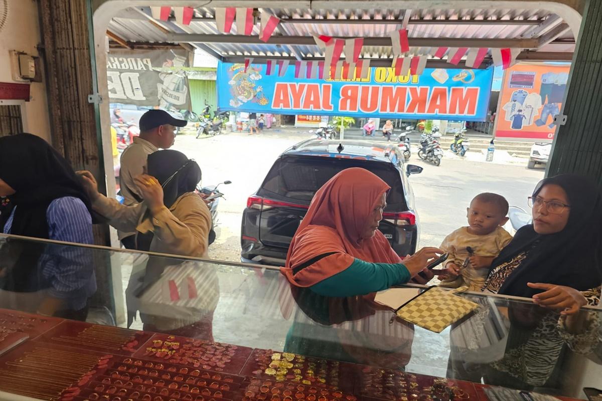 "Iya harga emas naik tipis hari ini karena memang sejak kemarin harganya emas dunia terus menguning di tengah fluktuasi nilai tukar rupiah," ujar Awi pemilik toko emas Makmur Jaya.
