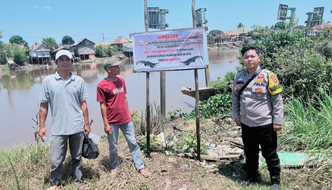 "Spanduk himbauan tertulis seluruh masyarakat Desa Sukadarma hati-hati beraktivitas di sepanjang aliran sungai, karena ada buaya yang berbahaya," katanya sewaktu dihubungi Minggu (27/10/2024).