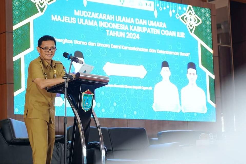 TRIBUNSUMSEL.COM, INDRALAYA - Pjs Bupati Ogan Ilir Kurniawan Abadi membuka pelatihan mudzakarah ulama dan umara Majelis Ulama Indonesia (MUI) Ogan Ilir tahun 2024.