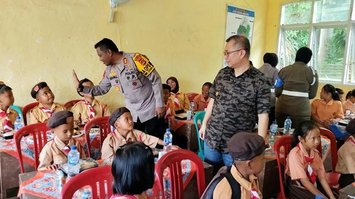 Pjs Bupati,Kapolres dan Kejari OKUT Bagikan Makanan Bergizi Gratis ke Siswa,Dukung Program Presiden
