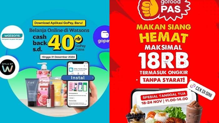 Kode promo Gojek terbaru Selasa 19 November 2024 dapatkan diskon besar-besaran hingga cashback GoFood. belanja di Watson dapat diskon Rp40 ribu