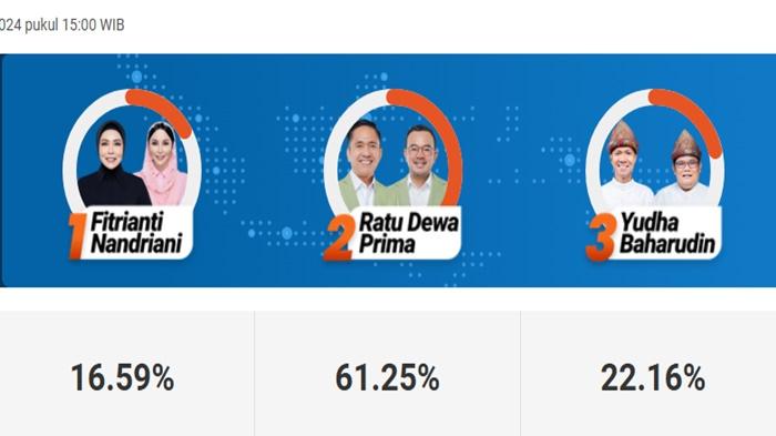 Berdasarkan hasil hitung cepat Lembaga Survei Indonesia (LSI), Ratu Dewa unggul dengan perolehan 61,25 persen.