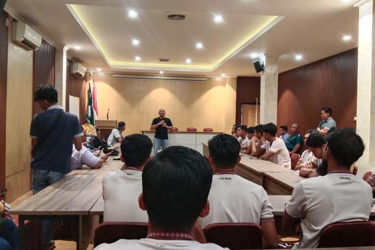 TRIBUNSUMSEL.COM, PALEMBANG - Para pemain Sriwijaya FC bertemu dengan owner Digi Sport, untuk mendiskusikan tentang nasib para pemain yang belum di bayar haknya, pada Jumat (13/12/2024).
