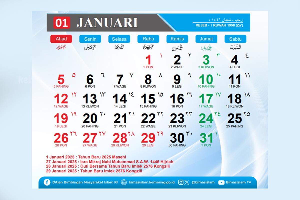Kalender Januari 2025 Lengkap dengan Tanggal Merah