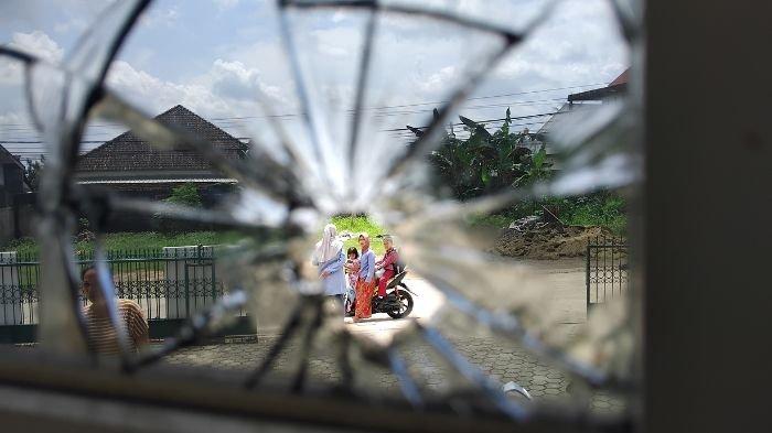 Jemaah masjid Ash-Shamad dihebohkan dengan pecahnya kaca masjid hingga membuat pecahannya berhamburan sampai ke dalam.