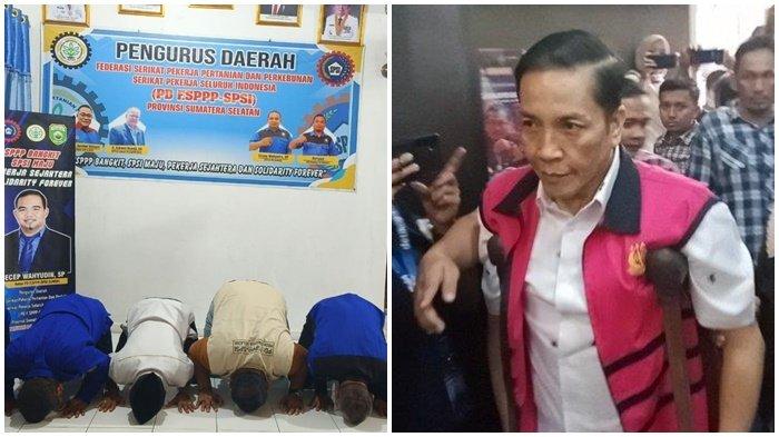 TRIBUNSUMSEL.COM, PALEMBANG - Serikat pekerja dan buruh di Sumatera Selatan (Sumsel) sujud syukur merespon Operasi Tangkap Tangan (OTT) yang dilakukan Kejari Palembang terhadap Kepala Dinas Tenaga Kerja dan Transmigrasi (Disnakertrans) Sumsel Deliar Marzoeki.