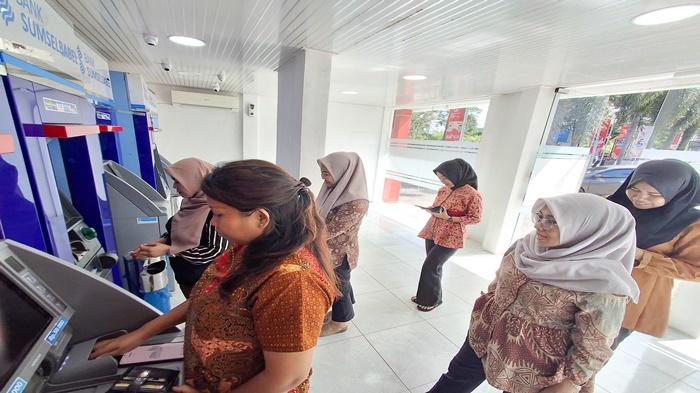 Masuknya gaji tersebut membuat PPPK dan TKK yang di lingkungan Pemkab Muba bernafas lega, hal tersebut terlihat antrian di ATM Bank Sumsel Babel untuk mengambil gaji, Rabu (6/2/2025).