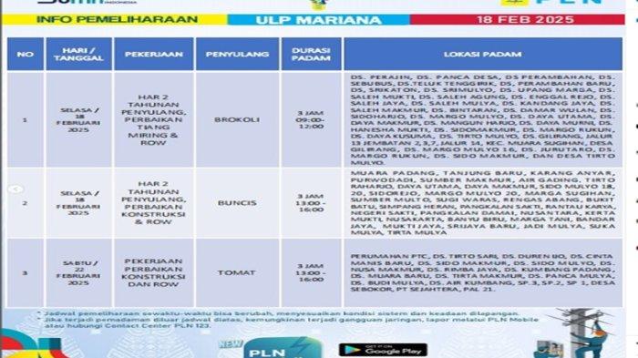 Pemadaman Listrik ULP Mariana 18 Februari 2025