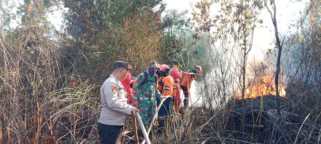 Personel Polsek Indralaya bersama tim gabungan berhasil memadamkan kebakaran lahan di Desa Sungai Rambutan, Kecamatan Indralaya Utara, Ogan Ilir.