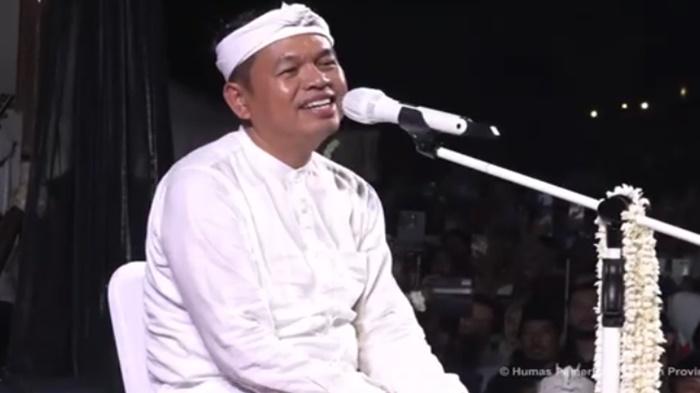 Meski sempat mengalami kejadian yang kurang mengenakan, Dedi Mulyadi tetap naik ke atas panggung tanpa menyebut sedikit pun soal penyiraman yang baru saja ia alami.