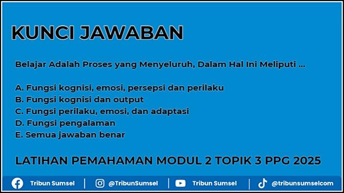 TRIBUNSUMSEL.COM - Belajar Adalah Proses yang Menyeluruh, Dalam Hal Ini Meliputi, soal modul 2 Topik 3 PPG 2025, kunci jawaban selengkapnya silakan disimak pada artikel berikut.