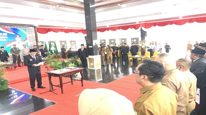 TRIBUNSUMSEL.COM,SEKAYU – Bupati Muba, H M Toha melakukan pelantikan dan pengambilan sumpah Pejabat Tinggi Pratama dan Pejabat Fungsional di Pendopoan Griya Bumi Serasan Sekate, Senin (11/8/2025).