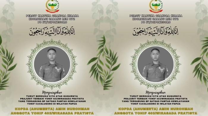 Pada Sabtu (11/10/2025), Kopda (Anumerta) Amin Nurohman gugur saat terlibat kontak senjata dengan kelompok Organisasi Papua Merdeka (OPM) .