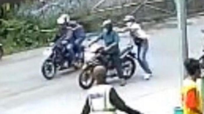 Detik-detik seorang pengendara sepeda motor pria diduga menjadi korban percobaan perampokan di Jalan Raya Nonon Sonthanie,