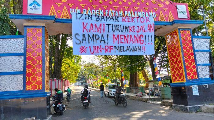Ijin ke Rektor Ikut Demo, Mahasiswa UIN Raden Fatah Palembang Pasang Spanduk di Gerbang