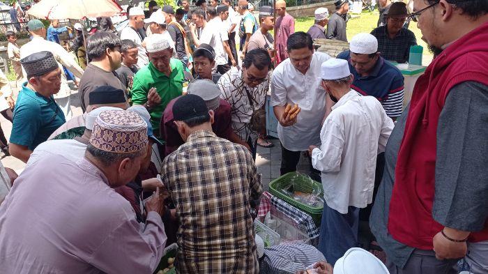 Puluhan orang mengantre di depan gerobak sederhana milik Abah Kodir (62).