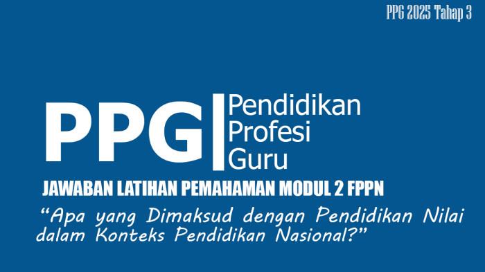 Artikel ini berisi kunci jawaban latihan pemahaman Modul 2 FPPN soal Apa yang Dimaksud dengan Pendidikan Nilai dalam Konteks Pendidikan Nasional