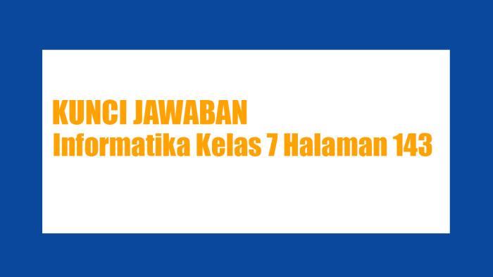 Berikut kunci jawaban soal Informatika kelas 7 halaman 143 kurikulum merdeka.