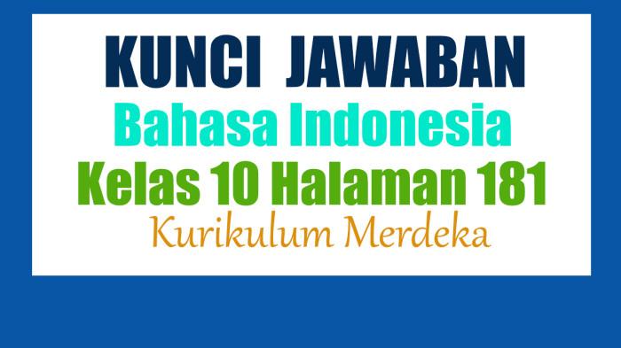 Berikut kunci jawaban bahasa Indonesia kelas 10 halaman 181 kurikulum merdeka.