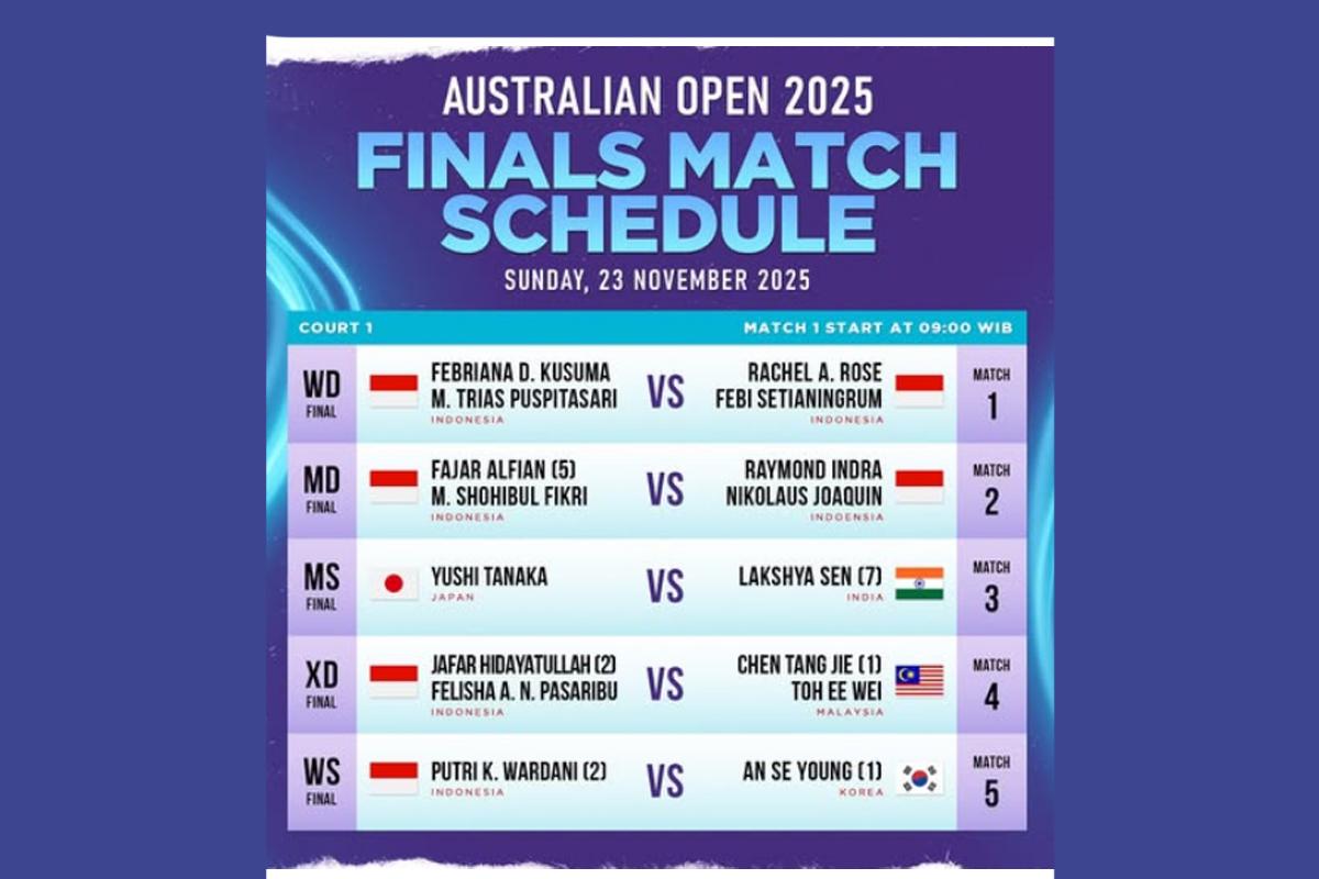 Jadwal Final Australia Open 2025 Badminton Minggu 23 November 2025, Link Nonton di Sini