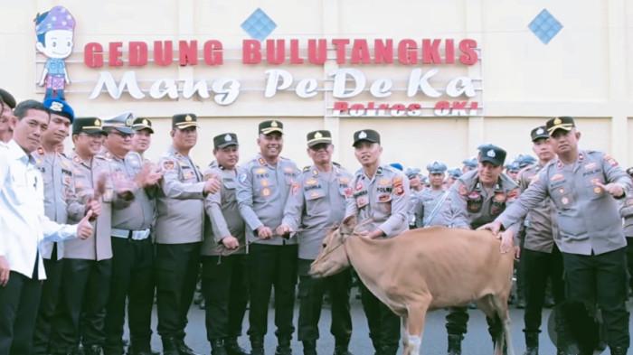 Dalam momen tersebut pihaknya memberikan penghargaan berupa seekor sapi sebagai simbol tali asih dari institusi kepada anggota yang telah mengabdikan diri di Polres OKI.