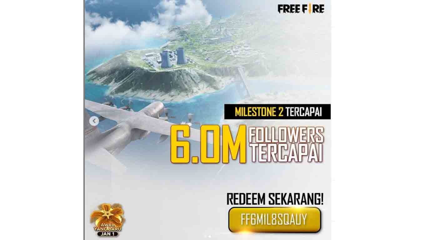 Kode Redeem Free Fire (FF) Gratis 11 Januari 2021, FF6M1L8SQAUY 6M Follower Tercapai