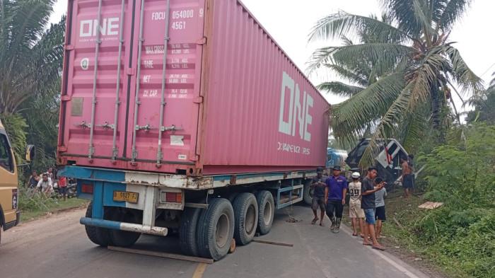 Sebuah truk tronton menabrak dan melindas pengendara sepeda listrik di Jalan Raya Palembang - Prabumulih, Kabupaten Muara Enim.