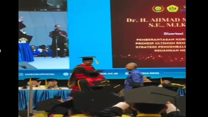 Momen Politikus Ahmad Sahroni muncul saat wisuda sandang gelar doktor Ilmu Hukum tengah jadi sorotan publik.
