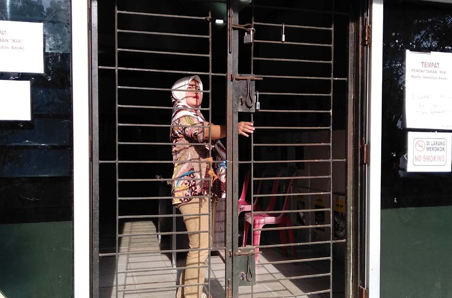 Panasnya proses rekapitulasi suara DPRD Provinsi membuat petugas PPK Gandus terpaksa menggembok pintu balai camat yang dijadikan lokasi penghitung