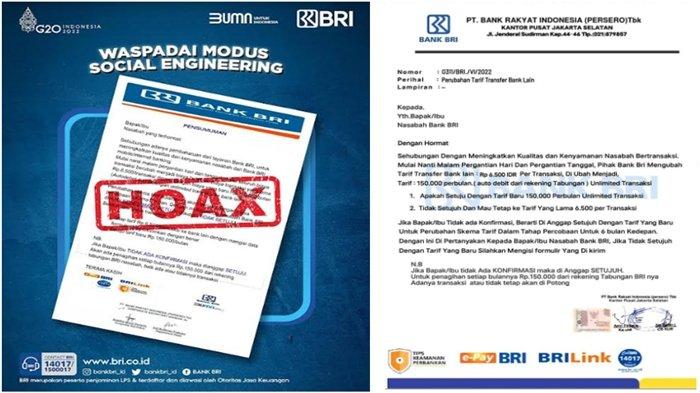 Hoax BRI biaya administrasi naik menjadi Rp 150 ribu per bulan dari sebelumnya Rp 6.500 per bulan. Pesan menyebar berantai lewat WhatsApp.