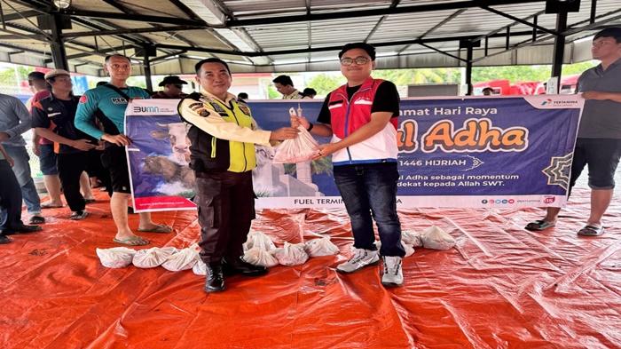 Hewan kurban berupa sapi Limosin dengan bobot 952 kg diberikan kepada masyarakat Talang Jelatang,