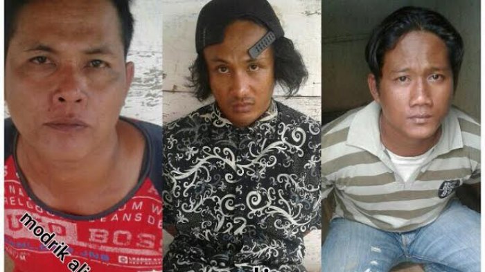 Ketiganya yakni Deki (30), Modrik (38) dan Rudi Hartono (22). Dari tangan pelaku diamankan satu buah sajam dan satu buah sebo penutup wajah.