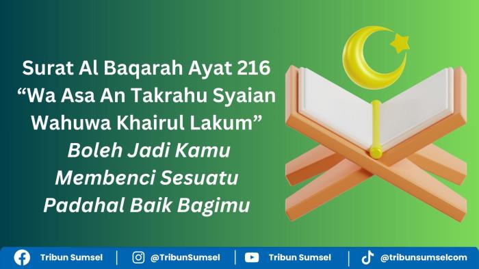 Ayat Wa Asa An Takrahu Syaian Wahuwa Khairul Lakum, Boleh Jadi Kamu Membenci Sesuatu Padahal Baik