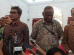 Mantan Komisioner Komisi Pemberantasan Korupsi (KPK) Tumpak Hatorangan Panggabean saat keluar usai menggelar pertemuan dengan mantan petinggi KPK