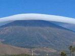 TRIBUNSUMSEL.COM - Heboh Fenomena Awan Lenticular Berbentuk Topi di Gunung Rinjani Lombok, Indah Namun Tetap Waspada