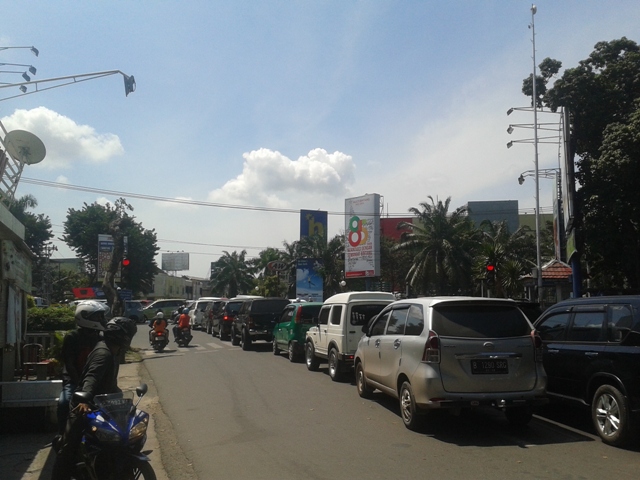 Kemacetan terjadi kawasan jalan Srijaya Negara dari perempatan Taman sampai ke arah Puncak Sekuning.